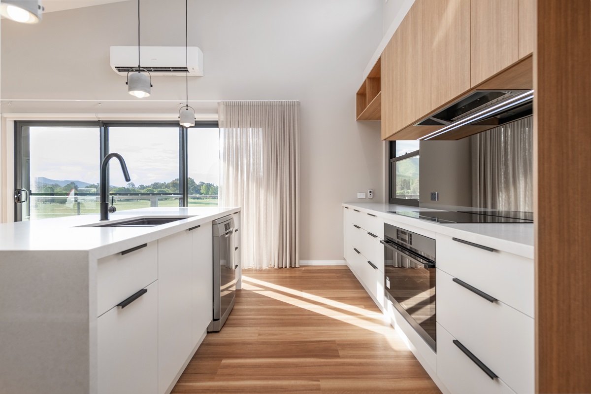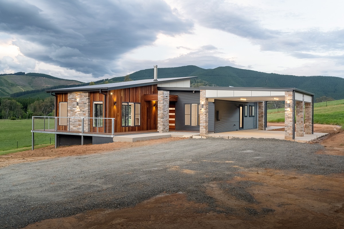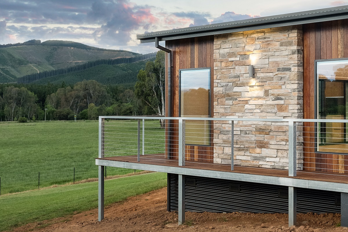 Its orientation ensures a 6.2 Star Energy Rating while taking advantage of the glorious views.  With its rustic exterior a blend of claddings was used to achieve the country style look the owner wanted.